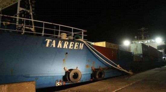 الباخرة تكريم تفرغ مشتقات نفطية ومواد إغاثية بميناء سقطرى