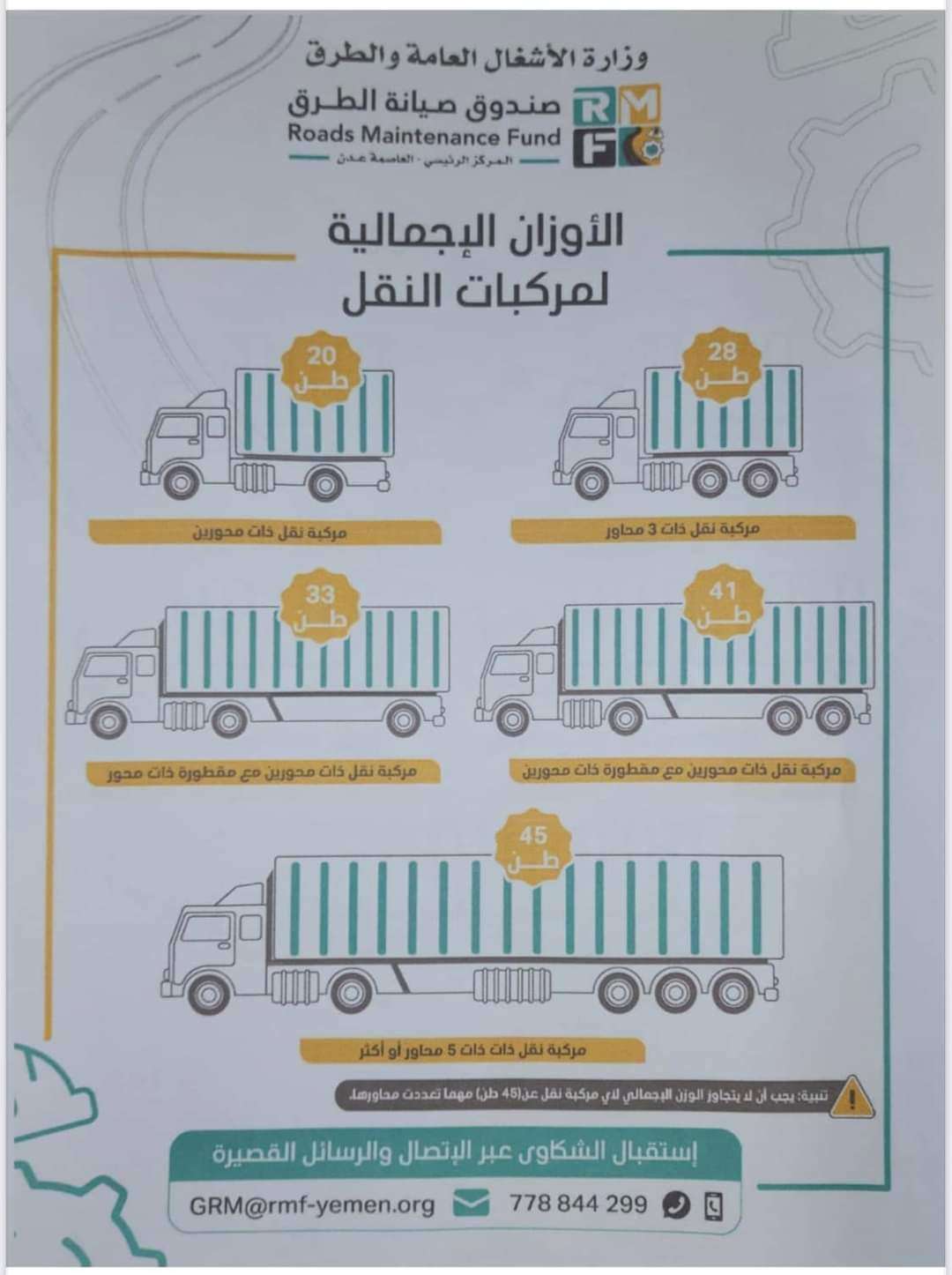 وستُسهِم هذه الحملة في الحدِّ من تَهالُك خطوط النقل العامة؛ الذي تسبِّبه الأحمال الزائدة للشاحنات والقاطرات؛ التي تنقل البضائع داخل المحافظات وإلى خارجها. هذا،