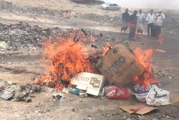 أتلف مكتب الاشغال العامة والطرق بمحافظة المهرة نصف طن من المواد الغذائية المنتهية الصلاحية والمخالفة للمواصفات والمقاييس والتي تم ضبطها في محلات بيع المواد الغذائية أثناء التفتيش اليومي.