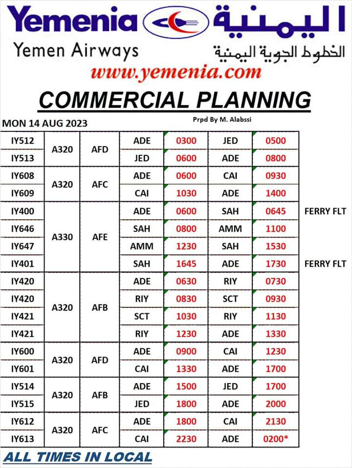 حفظ الصورة مواعيد رحلات طيران اليمنية ليوم غد الإثنين 14 أغسطس 2023 الأحد ١٣ أغسطس ٢٠٢٣ الساعة ٠٧:٤٣ مساءً متابعات/ مجال نت