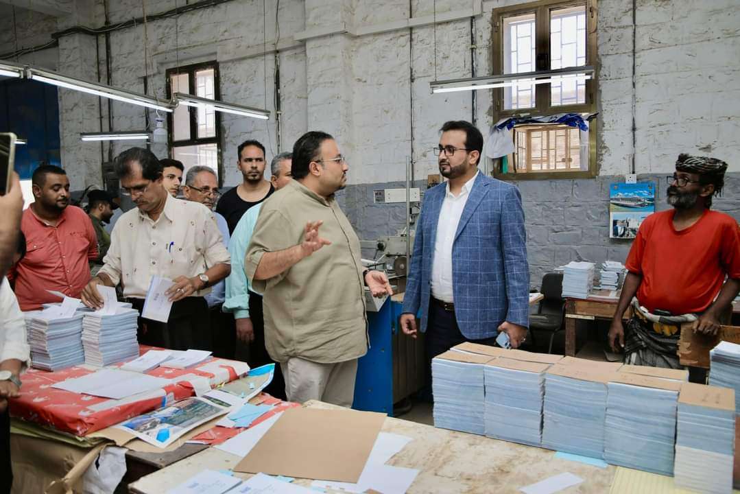 وقام العولقي بمعية باشراحيل وقيادة المؤسسة بتفقد المطبعة الصحفية والتجارية وإدارة التجليد والتكميل والارشيف الصحفي وأطلع على نشاط هذه الأقسام مشيدا بجهود العاملين والفنيين فيها.