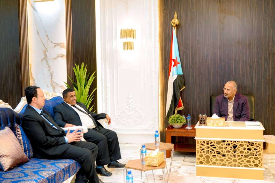 التقى الرئيس القائد عيدروس قاسم الزُبيدي رئيس المجلس الانتقالي الجنوبي، نائب رئيس مجلس القيادة الرئاسي، اليوم الأحد، جمعان عوض جمعان مدير البنك المركزي فرع محافظة المهرة.