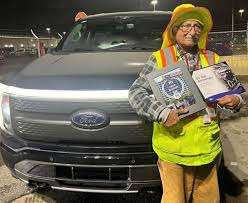 وظهر الدبيلي، على صورة وخلفه آخر إصدار من سيارات فورد رباعية الدفع، وفي يديه شهادة التكريم ودرع إشادة بالعمل بعد نحو 50 عاما من الخدمة والعمل بالشركة.