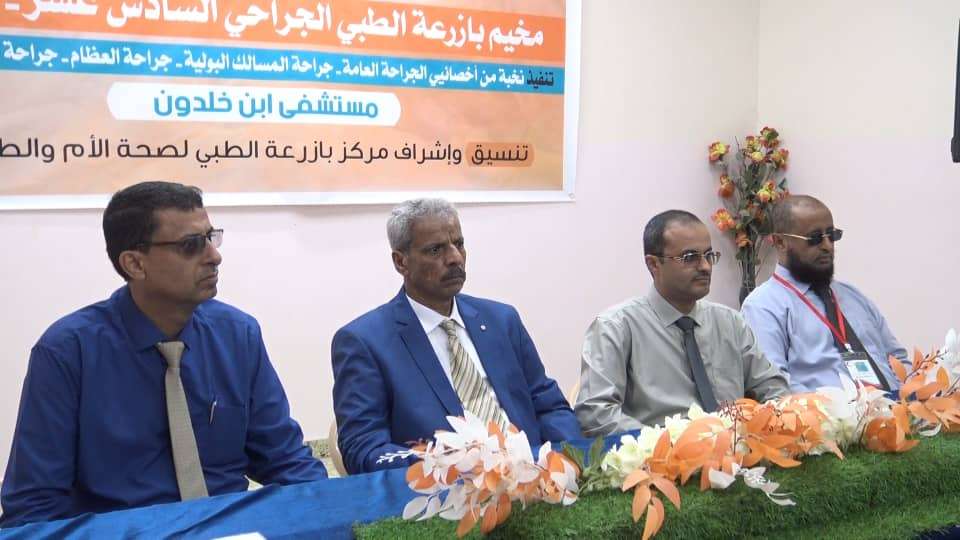 دشنت مؤسسة بازرعة التنموية الخيرية صباح اليوم في مستشفى بن خلدون بلحج، المخيم الطبي الجراحي السادس عشر برعاية وزير الصحة العامة والسكان الدكتور قاسم بحيبح ومحافظ لحج احمد عبد الله تركي.