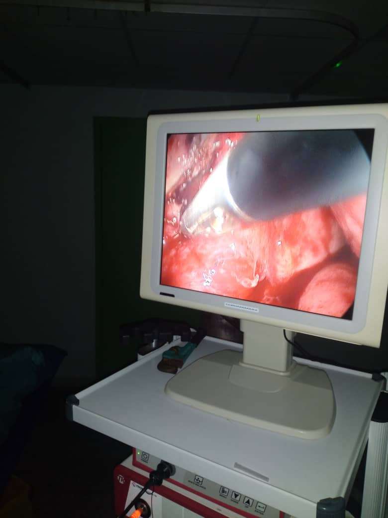 تم إجراء الفحوصات اللازمة للمريضة وخضعت بعدها لعملية بواسطة المنظار وتمت العملية بنجاح.