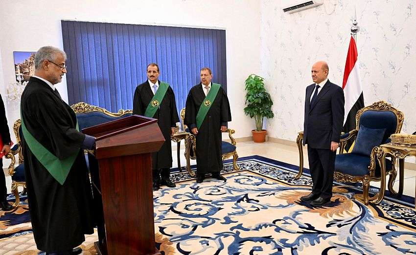 القضاة المعينون بالمحكمة العليا يؤدون اليمين القانونية امام رئيس مجلس القيادة الرئاسي