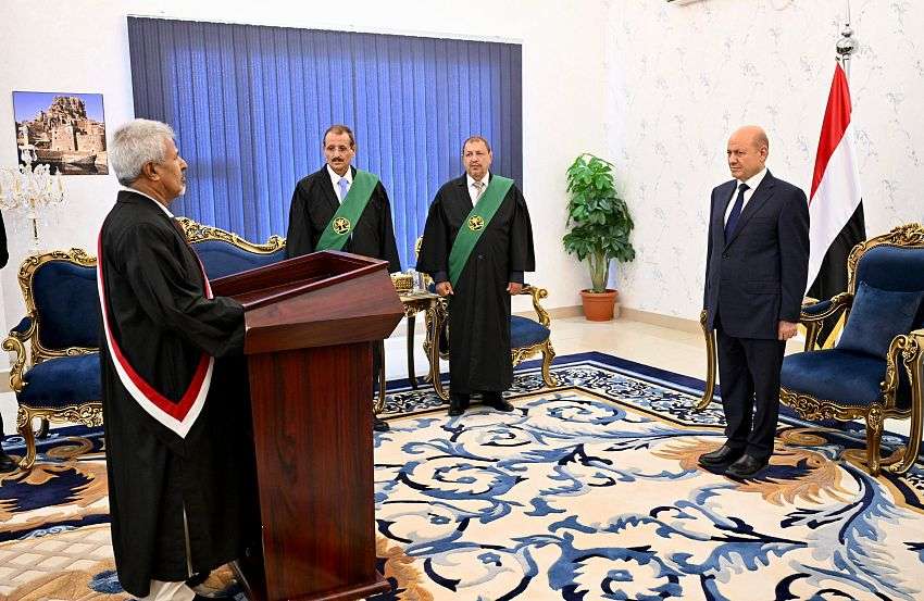 محامي عام النيابات العسكرية يؤدي اليمين القانونية امام رئيس مجلس القيادة الرئاسي