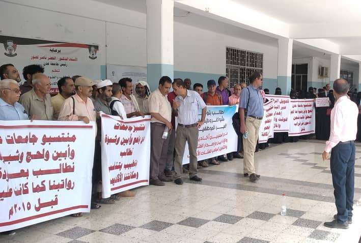 نقابة عدن ولحج وأبين وشبوة تنظم وقفة احتجاجية بكلية الطب