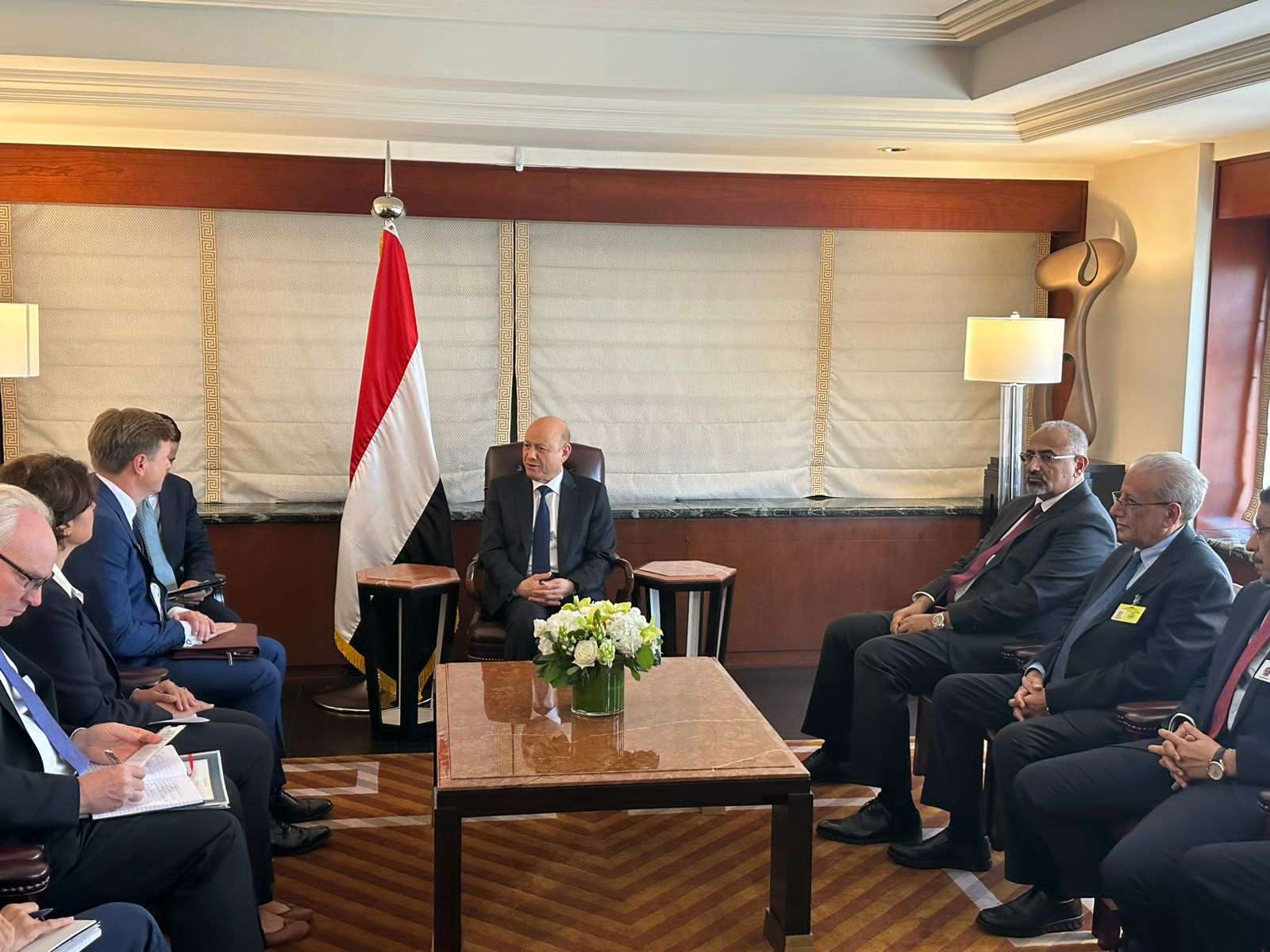 جاء ذلك في لقاء جمعه، بمعية الدكتور رشاد العليمي رئيس مجلس القيادة الرئاسي، بالثلاثية الدولية، بريطانيا، وأمريكا، وفرنسا، على هامش انعقاد الدورة الـ78 للجمعية العامة للأمم المتحدة.