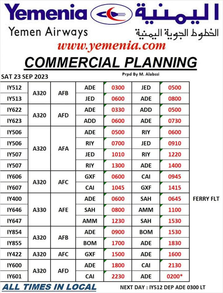 حفظ الصورة مواعيد رحلات طيران اليمنية ليوم غد السبت 23 سبتمبر 2023 الجمعة ٢٢ سبتمبر ٢٠٢٣ الساعة ٠٨:٥٠ مساءً متابعات/ مجال نت