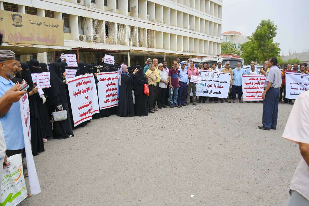 نفذت نقابة أعضاء هيئة التدريس والتدريس المساعدة ونقابة عمال وموظفي جامعات عدن لحج أبين شبوة صباح، اليوم الأحد، في نيابة شؤون الطلاب بالعاصمة عدن وقفتهم الاحتجاجية الثانية للمطالبة بحقوقهم المالية والإدارية والأكاديمية القانونية المشروعة.