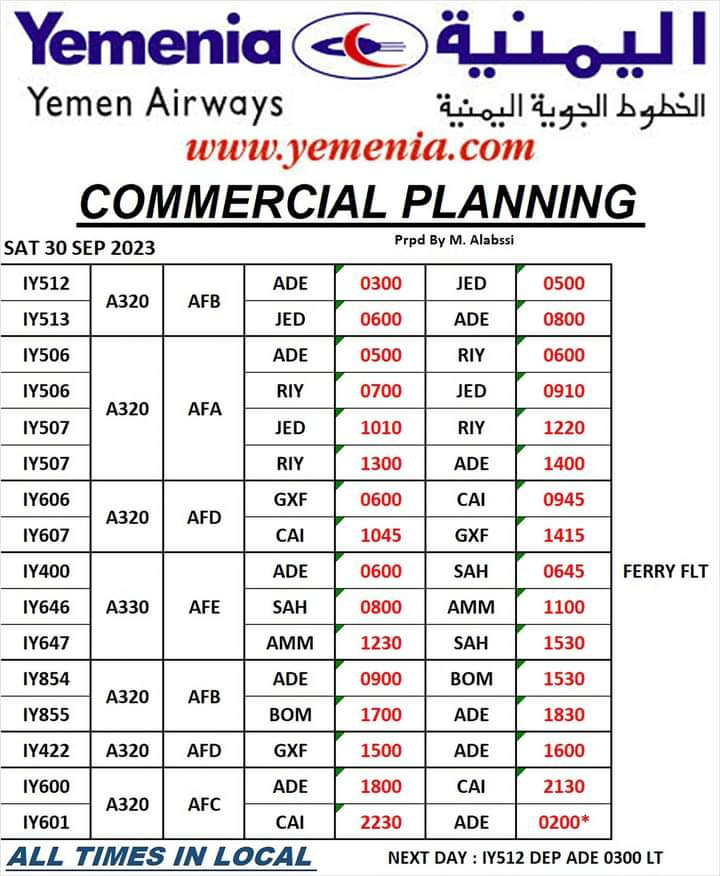 حفظ الصورة مواعيد رحلات طيران اليمنية ليوم غد السبت 30 سبتمبر 2023 الجمعة ٢٩ سبتمبر ٢٠٢٣ الساعة ٠٦:٥٢ مساءً متابعات/ مجال نت