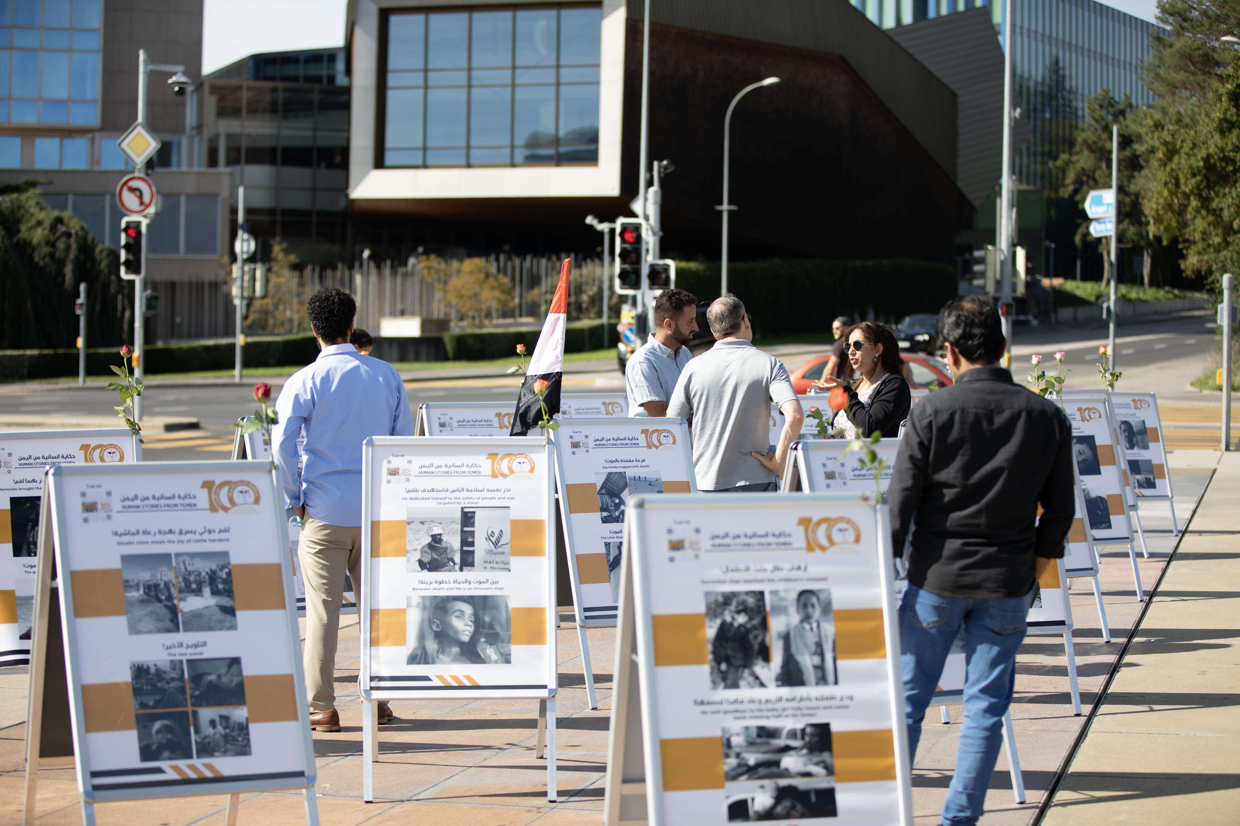 أقيم في ساحة الامم المتحدة بمدينة جنيف السويسرية، معرضاً مصوراً لجرائم وانتهاكات المليشيات الحوثية الارهابية المدعومة ايرانياً ضد أبناء الشعب اليمني .