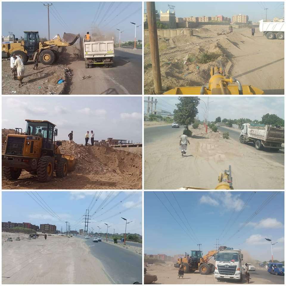 حملة واسعة لإزالة الحواجز الترابية من أمام فندق القصر وفتح ممرات السيول بالحسوة في عدن