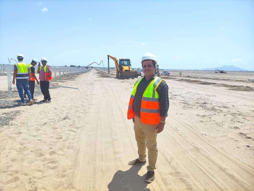 التقينا بالاستشاري الالماني الذي يمثل شركة مصدر الاماراتية وكذلك استشاري شركة elf المشرف على اداء المقاول ، اضافة الى المقاول المنفذ نشوان الصغير من شركة اولاد الصغير ، وكانوا للتو خارجين من اجتماع اونلاين مع شركة مصدر في ابوظبي التي تعقد معهم اجتماعا اسبوعيا عبر النت لتقييم المشروع.