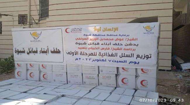 برعاية محافظ محافظة شبوة الشيخ عوض بن محمد بن الوزير وبدعم سخي من دولة الإمارات عبر ذراعها الإنساني “الهلال الأحمر الإماراتي” دشن رئيس حلف أبناء قبائل شبوة الشيخ فارس الخبيلي توزيع المرحلة الأولى من السلل الغذائية على أسر الشهداء والمحتاجين وذلك بمقر الحلف بعاصمة المحافظة عتق.