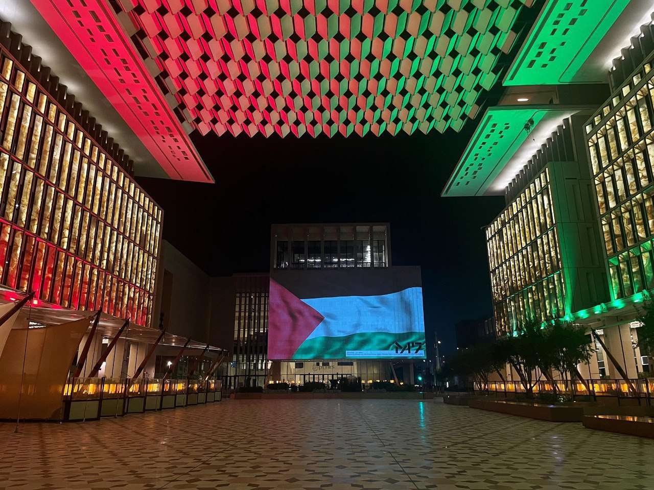رفعت دولة قطر علم فلسطين في الأماكن العامة تضامناً مع غزة ومع معركة طوفان الاقصى.