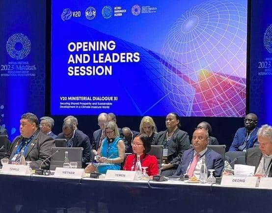 شارك وزير المالية سالم بن بريك، اليوم، بمدينة مراكش المغربية، في اجتماع الدول النامية مع مجموعة G20 (الحوار الحادي عشر)، على هامش الاجتماعات السنوية لمجموعة البنك وصندوق النقد الدوليين.