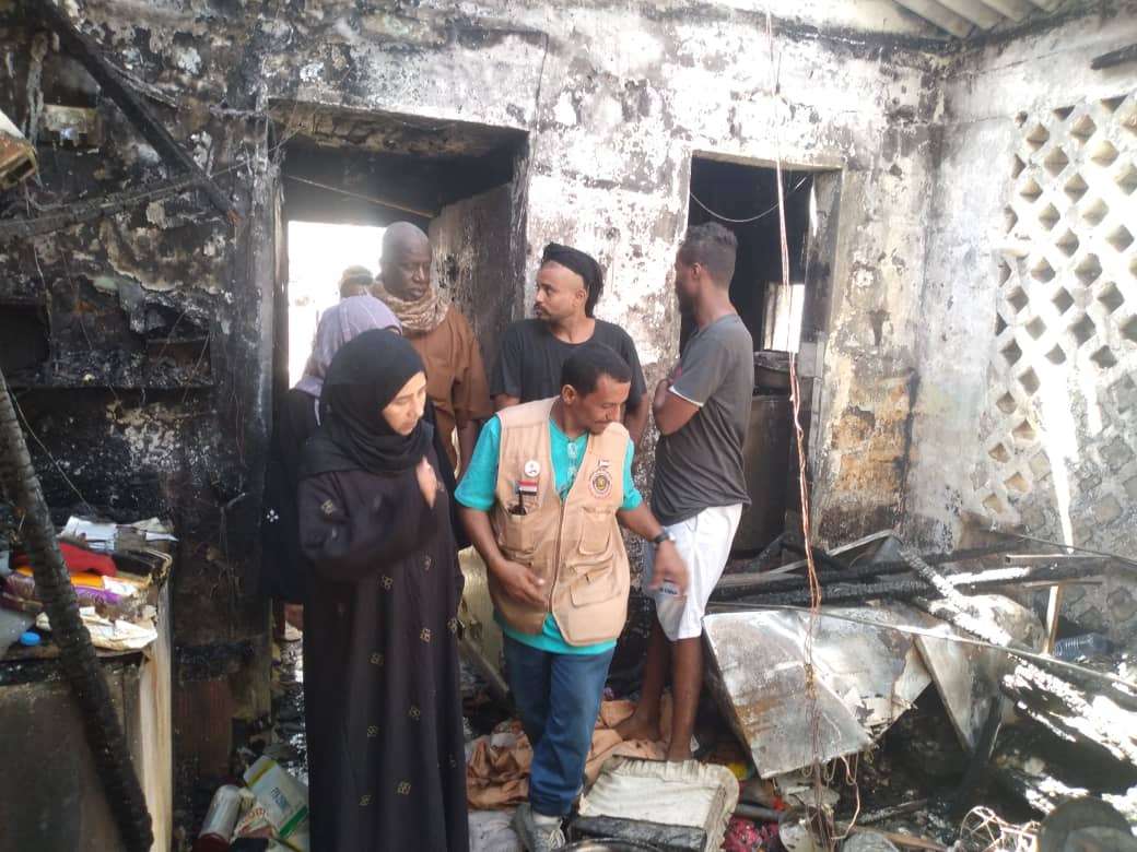 هيئة إغاثة الانتقالي تتفقد احتياجات الأسرة المنكوبة بحريق القلوعة