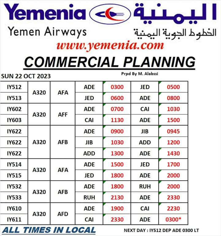 حفظ الصورة مواعيد رحلات طيران اليمنية ليوم الأحد 22 أكتوبر 2023 السبت ٢١ أكتوبر ٢٠٢٣ الساعة ٠٣:٥١ مساءً متابعات/ مجال نت