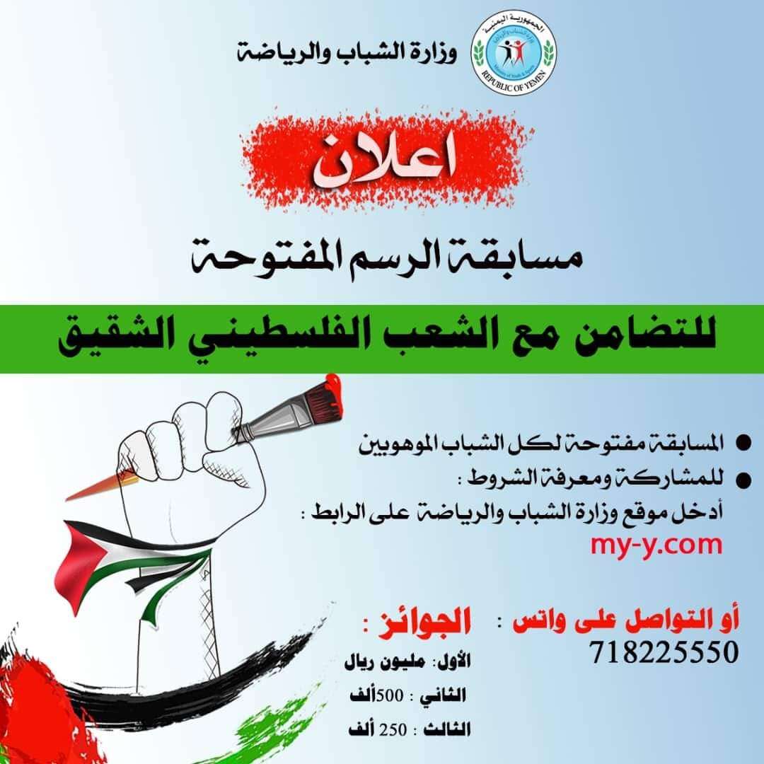 وزارة الشباب والرياضة تعلن عن مسابقة الرسم المفتوحة تضامنا مع الشعب الفلسطيني