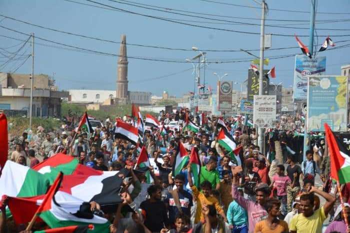 تظاهرة حاشدة في المخا تضامناً مع غزة وتنديدًا بجرائم الاحتلال