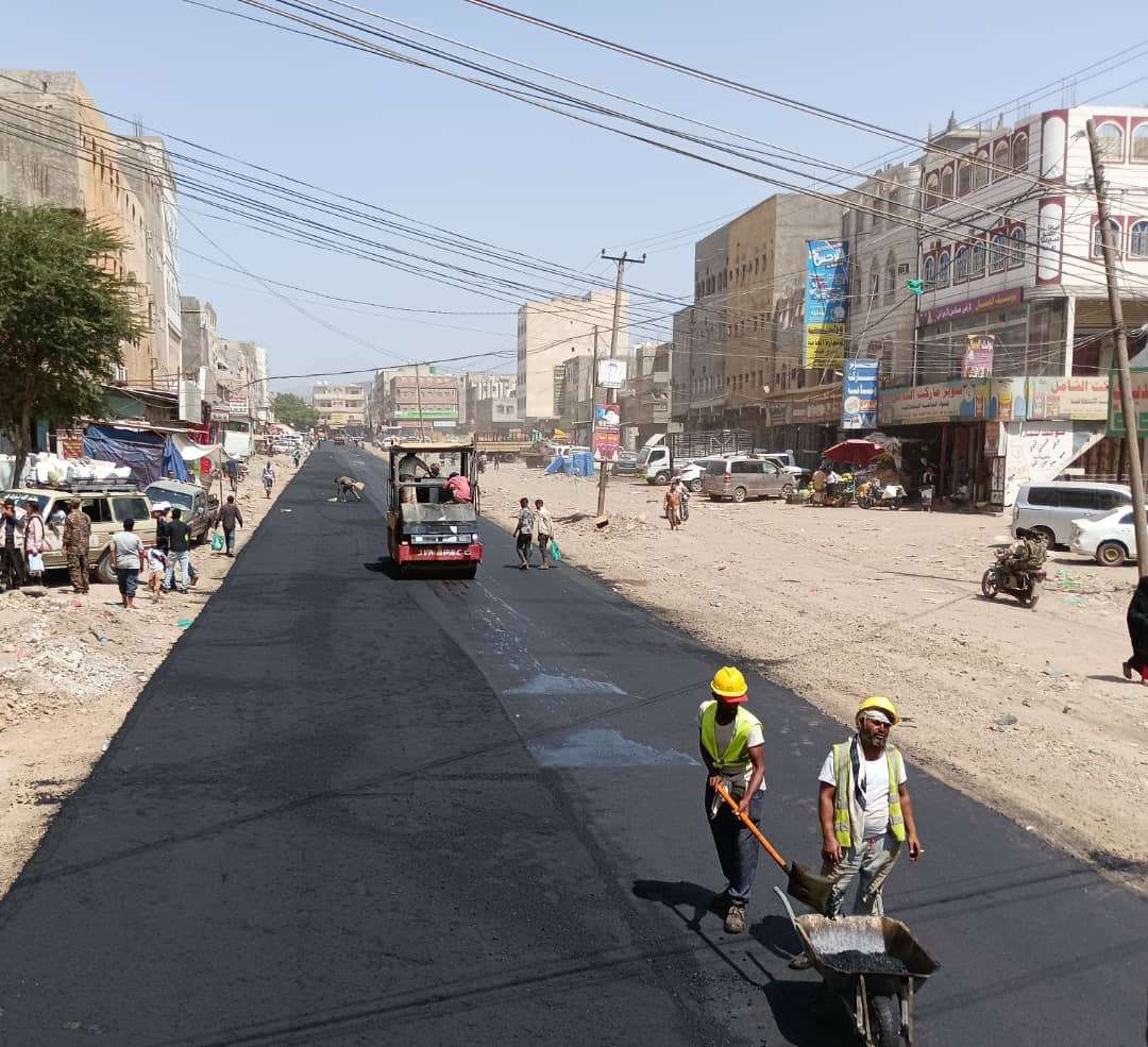 البالغ طوله 720 متراً وعرضه 8 أمتار ضمن مشروع تأهيل شوارع مدينة الحبيلين بتمويل من صندوق صيانة الطرق والجسور المقر الرئيسي عدن، وتنفذه شركة أولاد صلاح للمقاولات.