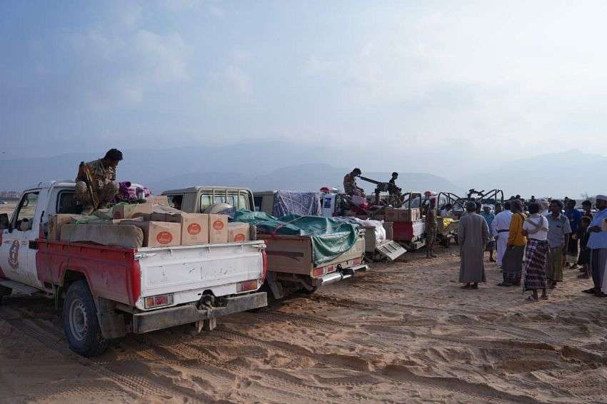 وصلت الى مديرية حصوين بمحافظة المهرة، اليوم، القافلة الغذائية الثانية للتخفيف من معاناة الاسر المتضررة من الاعصار والسيول والامطار الغزيرة التي ضربت المحافظة يومي الاثنين والثلاثاء الماضيين.