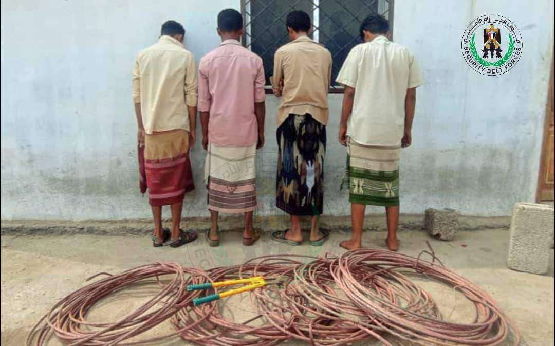 تمكنت قوات الحزام الأمني العاصمة عدن من إلقاء القبض على عصابة تقوم بسرقة أسلاك وكيابل الضغط العالي في عدد من مناطق مديرية البريقة.