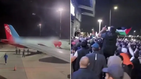اقتحم متظاهرون مساء الاحد، مطارا في داغستان التابعة للاتحاد الروسي بعد هبوط طائرة قادمة من إسرائيل.
