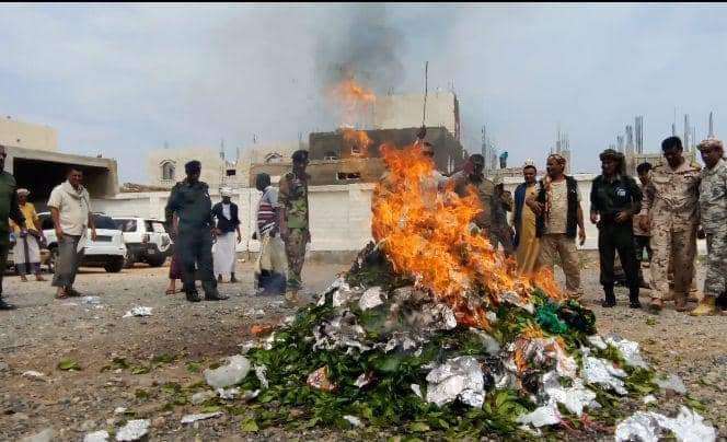 الأجهزة الأمنية بسقطرى تتلف كمية كبيرة من القات المهرب