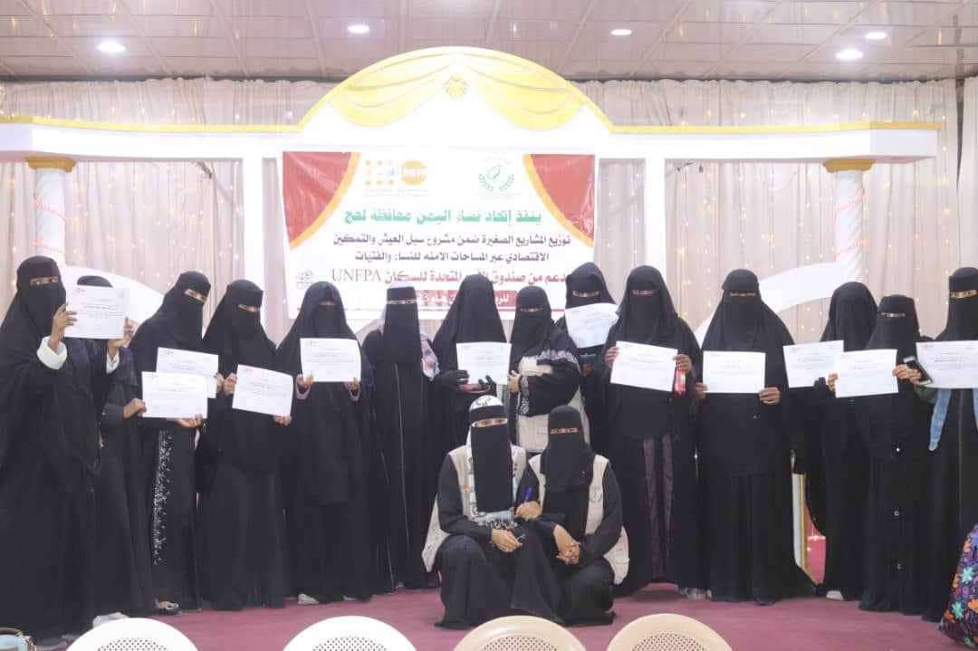 اتحاد النساء بلحج يدشن توزيع أدوات التمكين الاقتصادي ل12 مستفيدة
