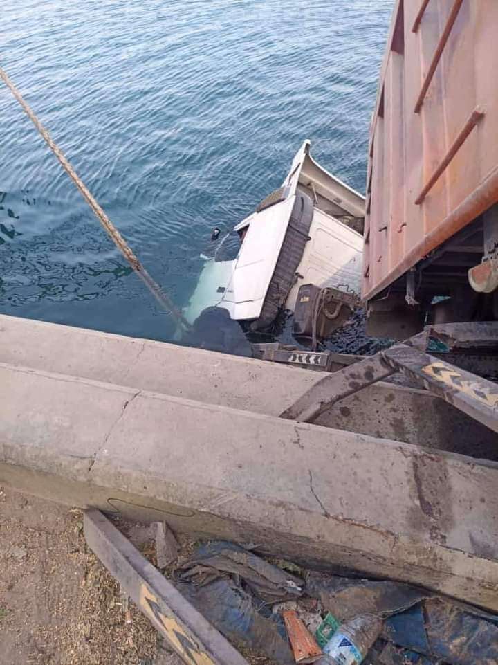 وكشفت المصادر التي تعمل في قطاع النقل أن إحدى شاحنات النقل الثقيل هوت مقدمتها إلى البحر في موانئ الصليف أثناء محاولة سائقها إيقافها بجانب الميناء استعدادا لتحميلها