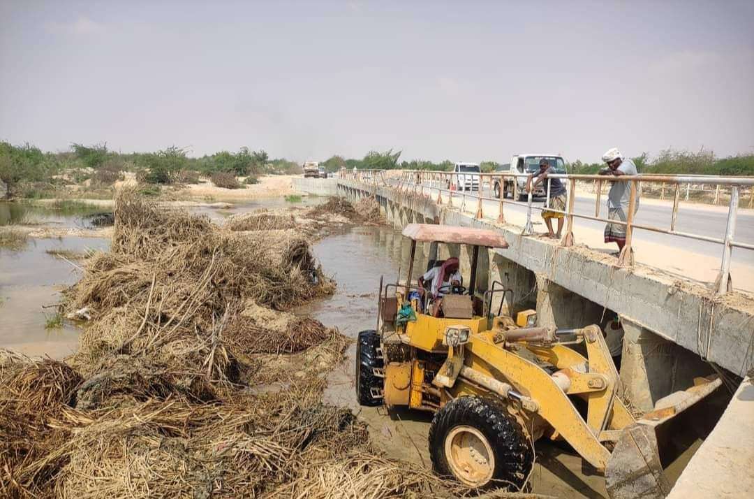 إزالة مخلفات السيول من عبارات طريق وادي الجزع