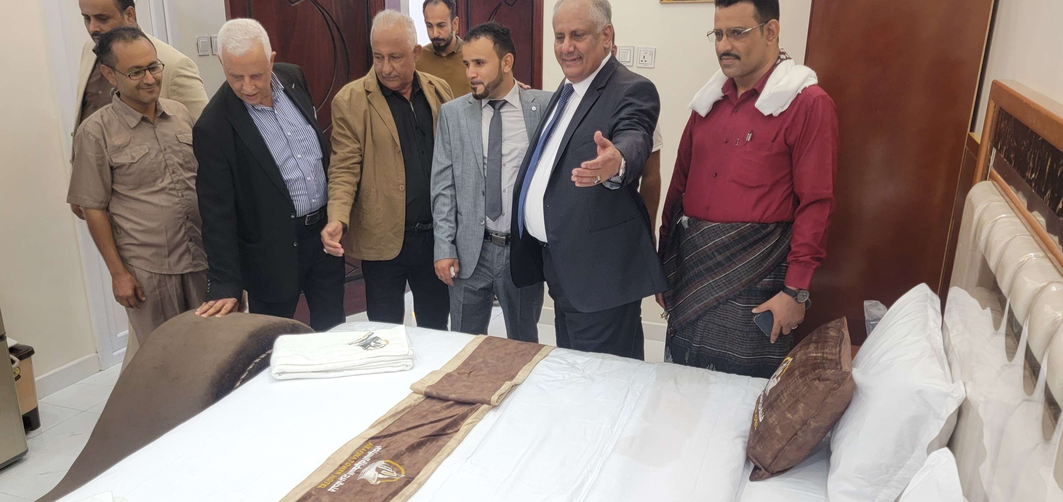 وعقب قص الشريط، طاف وكيلا عدن، "الدكتور شائع"، و"المفلحي"، في أرجاء الفندق، مستمعين من المستثمر مالك الفندق، الشيخ عبدالجليل عبدالسلام المريسي، إلى شرح واف عن الفندق الكائن في منطقة السنافر، والمكون من ثمانية طوابق ويحتوي على "70"غرفة و"12"جناحاً، بالإضافة إلى خدمات فندقية راقية، معرباً عن شكره وتقديره قيادتي السلطة المحلية بالعاصمة عدن، ومديرية المنصورة، على التسهيلات الكبيرة التي تقدمها للمستثمرين ورعايتهم الرسمية للقطاع الخاص، وما قدمته له خلال تجهيز وافتتاح الفندق.