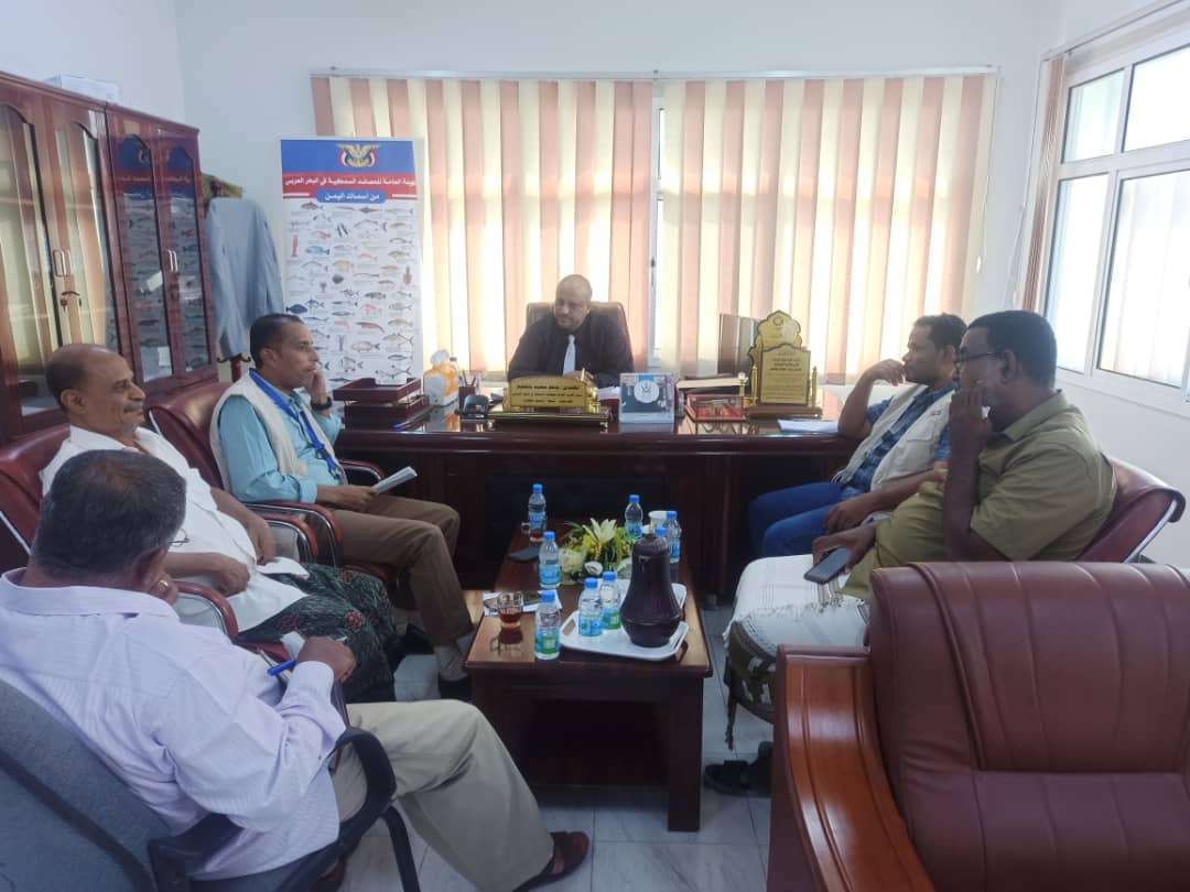 ناقش رئيس هيئة المصائد السمكية بمحافظات حضرموت شبوة سقطرى المهندس يسلم بابلغوم اليوم بمدينة المكلا مع فريق من وكالة تنمية المنشآت الصغيرة والأصغر مشروع دعم القطاع السمكي.