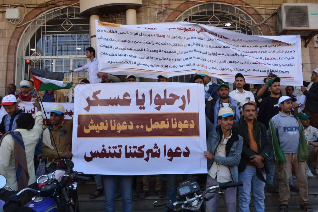 وناشد العمال السلطات المسؤولة بالتدخل العاجل لحمايتهم وحماية شركاتهم من المسلحين الذين يقودهم أو يرعاهم مسؤولون نافذون في الدولة ، والذين يستغلون مناصبهم ووظائفهم للاستقواء على المواطنين والمستثمرين ومحاولة مصادرة الشركات .
