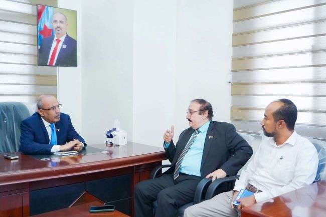 التقى الأستاذ علي الكثيري رئيس الجمعية الوطنية للمجلس الانتقالي الجنوبي، اليوم الخميس، بمكتبه بالعاصمة عدن، السفير قاسم عسكر جبران ممثل الإدارة العامة للشؤون الخارجية للمجلس في إثيوبيا والاتحاد الأفريقي.