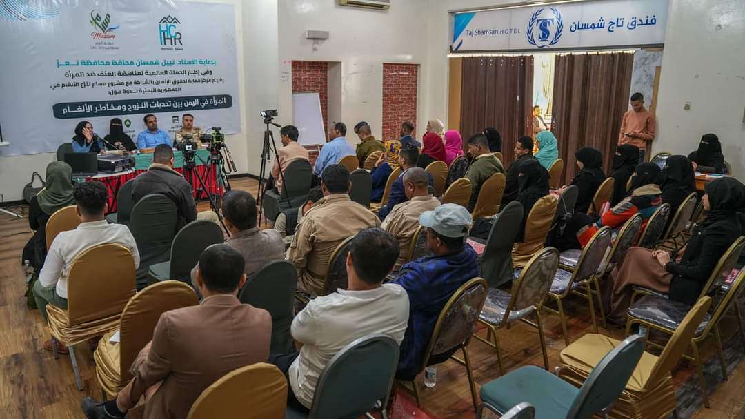أقام مشروع "مسام" لنزع الألغام في اليمن بالشراكة مع مركز حماية لحقوق الإنسان في مدينة تعز ندوة بعنوان "المرأة بين تحديات النزوح ومخاطر الألغام".