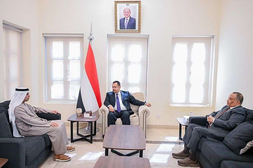 جاء ذلك خلال استقبال رئيس الوزراء سفير دولة الإمارات العربية المتحدة لدى اليمن، محمد الزعابي، الذي سلمه الرسالة، حيث جرى مناقشة مستجدات الأوضاع على الساحة الوطنية والإقليمية والدولية ووجهات النظر المشتركة تجاهها.