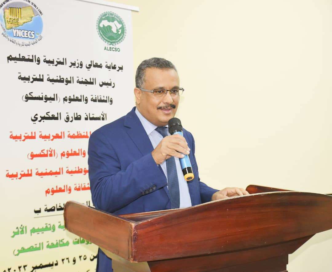 برعاية وزير التربية والتعليم رئيس اللجنة الوطنية اليمنية لليونسكو الاستاذ طارق العكبري وبدعم من المنظمة العربية للتربية والثقافة والعلوم (الألكسو) عقدت اللجنة الوطنية اليمنية للتربية والثقافة والعلوم صباح اليوم بالعاصمة عدن ورشة العمل العلمية الخاصة ببناء القدرات الوطنية وتقييم الاثر البيئي لمشروعات مكافحة التصحر التي تستمر من( 25_26 ديسمبر 2023م) ينتظم فيها (20)مشارك من المختصين في الوزارات المعنية بالمناطق المحررة بالإضافة إلى خبراء عرب من جمهورية مصر العربية وسوريا والعراق.