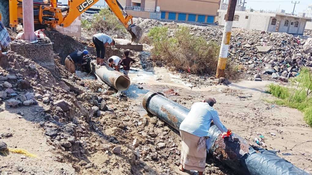 إستكمال إصلاح الكسر بخط المياه الرئيسي في البريقة