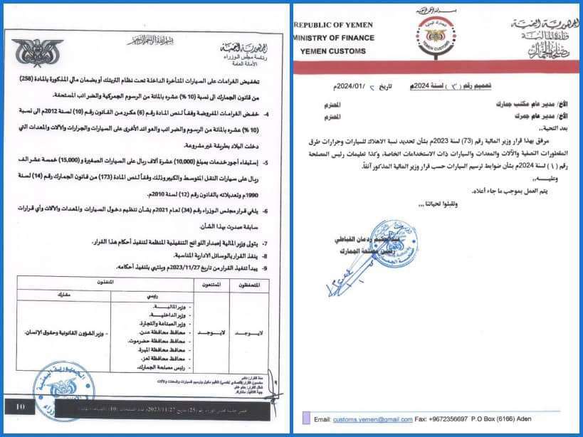 وعبر تجار ومستوردي قطع غيار السيارات المستعملة في دبي واليمن عن شكرهم وتقديرهم لرئيس مصلحة الجمارك اليمنية الاستاذ / عبد الحكيم ردمان القباطي وجميع موظفي مصلحة الجمارك، وجهودهم في متابعة إصدار القرار رقم (3) لعام 2023م لتسهيل إجراءات استيراد قطع غيار السيارات المستعملة والسماح باستيرادها بصورة مستمرة.