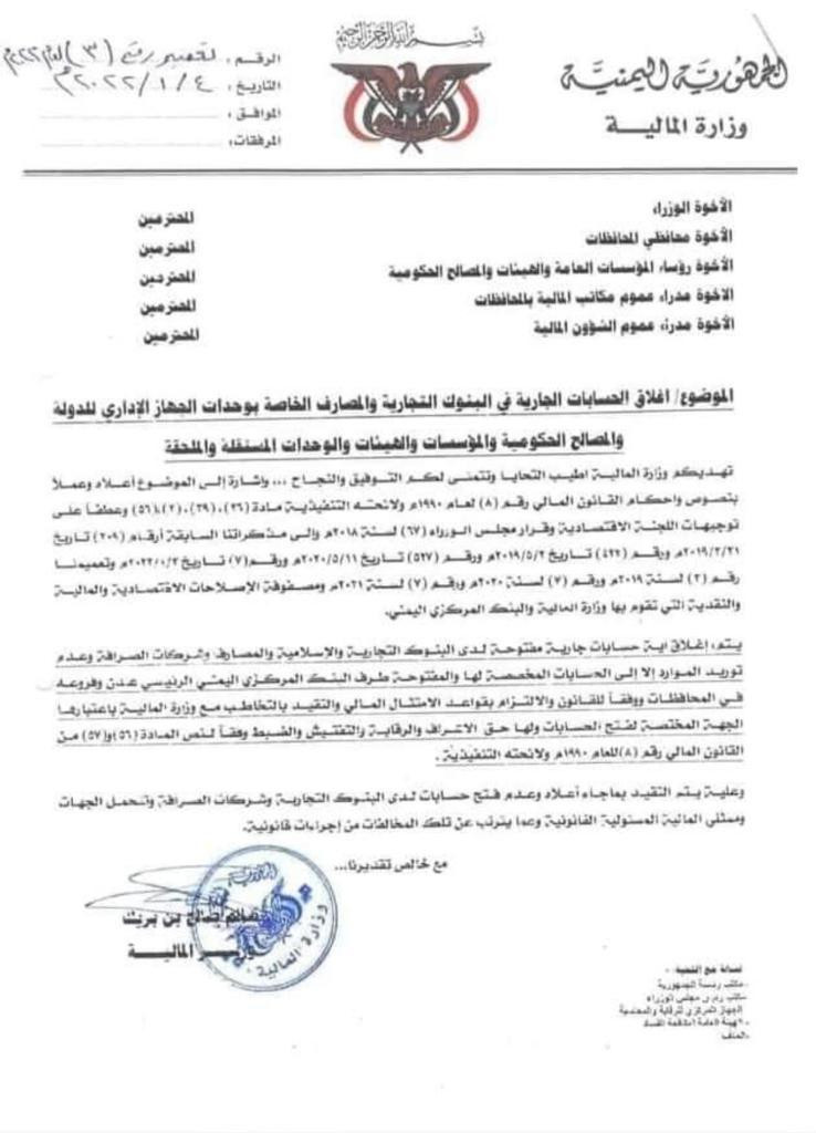 وتساءل النشطاء :كيف يتم توريد في شركات صرافة خاصة في مخالفة للقانون اليمن حيث يجب أن تورد الى البنك المركزي بحسب القانون و تنفيذ لتوجيهات وزير المالية في مذكرة رقم بتاريخ والتي تؤكد منع فتح حسابات في الشركات الصرافة.