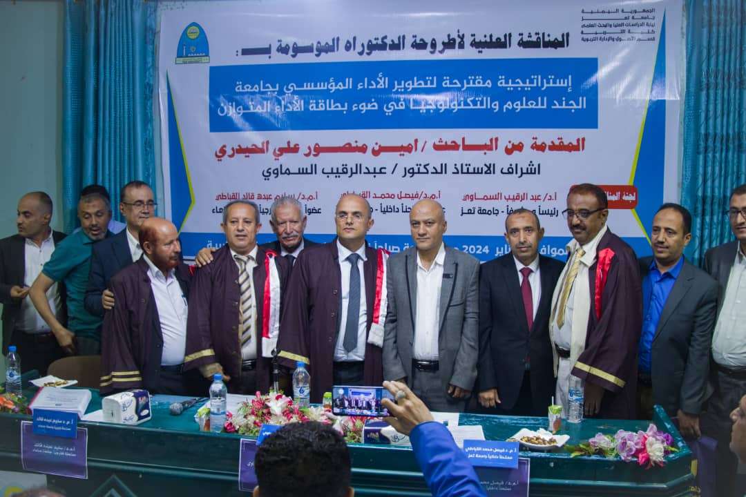 وهنأت جامعة الجند الباحث باعتباره أمين عام الجامعة بحصوله على الدرجة، متمنين له وللجامعة كل التوفيق.