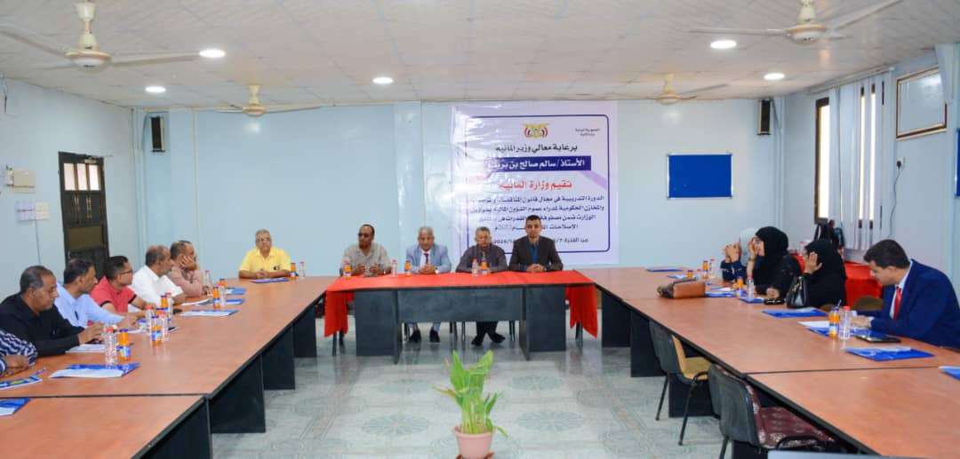بدأت في العاصمة المؤقتة عدن، اليوم، دورة تدريبية في مجال قانون المناقصات والمزايدات والمخازن الحكومية، تنظمها وزارة المالية ضمن مصفوفة بناء القدرات في برنامج الإصلاحات المالية.