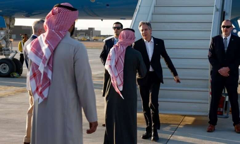 وحطت طائرة بلينكن بعد ظهر أمس الإثنين في مطار مدينة العلا التاريخية بشمال غرب السعودية، ضمن جولة إقليمية بدأها وزير الخارجية الأمريكي، من تركيا وشملت أيضًا اليونان، والأردن، وقطر، والإمارات، للتحذير من أن الحرب بين إسرائيل وحركة حماس الفلسطينية التي دخلت شهرها الرابع، قد “تنتشر”.