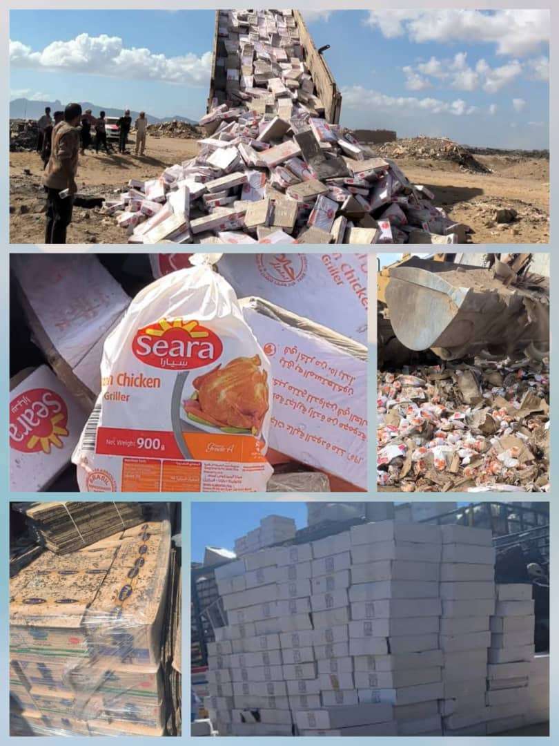 قامت الهيئة اليمنية للمواصفات والمقاييس وضبط الجودة عبر مكتبها في ميناء المنطقة الحرة بالعاصمة المؤقتة عدن برفض وإتلاف شحنة مستوردة عبارة عن حاوية بطول 40 قدم تحتوي على(2898) كرتون من الدجاج المجمد المستورد ذات منشأ برازيلي ماركة (سيارا)، كونها فاسدة ومخالفة للمواصفات القياسية وغير صالحة للاستخدام الآدمي، حيث أن المنتج قد وصل الى مرحلة الإدماء والذي معه تنشأ البكتيريا الضارة والممرضة للإنسان كالسالمونيلا، وظهور الإدماء دليل على سوء التبريد وعدم الحفاظ على المنتج مجمدا عند -18 درجة مؤية مما أدى الى ذوبانه وحدوث الادماء وتحلل الأنسجة، تم الاتلاف في مقلب المنطقة الحرة وبمشاركة جمارك المنطقة الحرة والجهات ذات العلاقة.