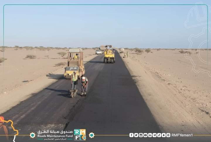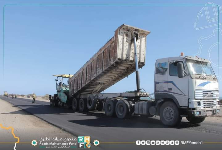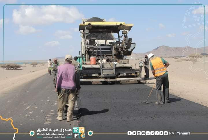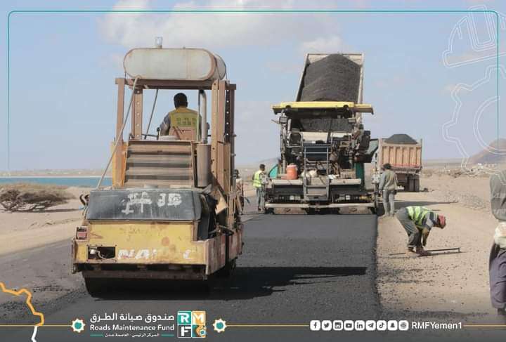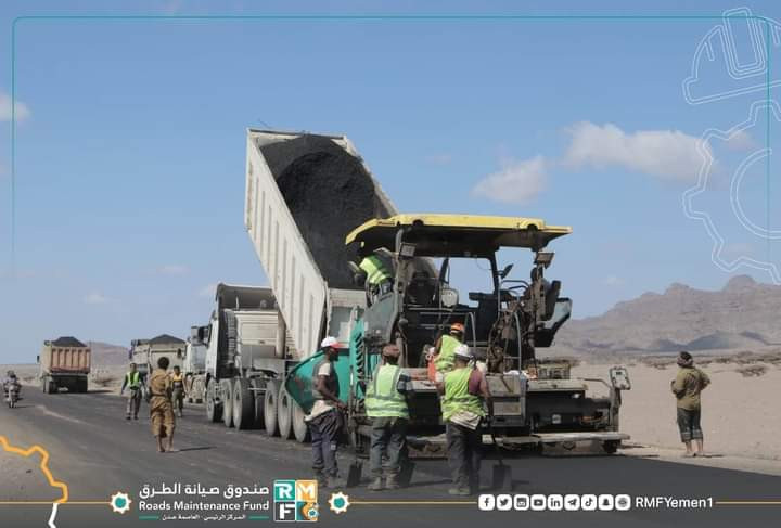 أعمال سفلتة واسعة يشهدها مشروع خط راس عمران _ المخا في لحج