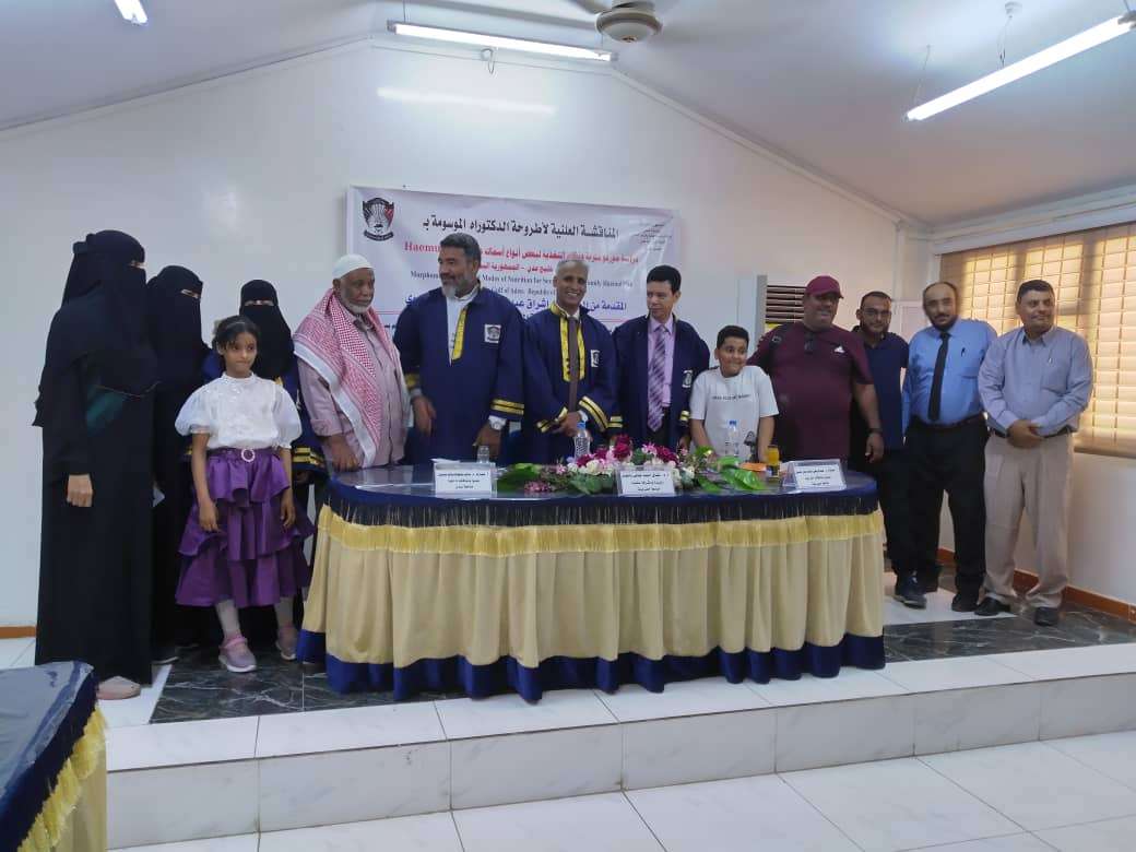 هذا وقد ناقشة الباحثة أشراق النعوي صباح اليوم أمام لجنة الحكام المشكلة من أ . د جمال أحمد عوض باعوم رئيسآ ومشرفآ من جامعة حضرموت ، وعضوية أ . د عبدالرحمن سالم عمر ياسين مناقشآ خارجيآ جامعة حضرموت وكذلك أ . د سالم محفوظ سالم بسيس عضوآ مناقشآ عن جامعة عدن ..